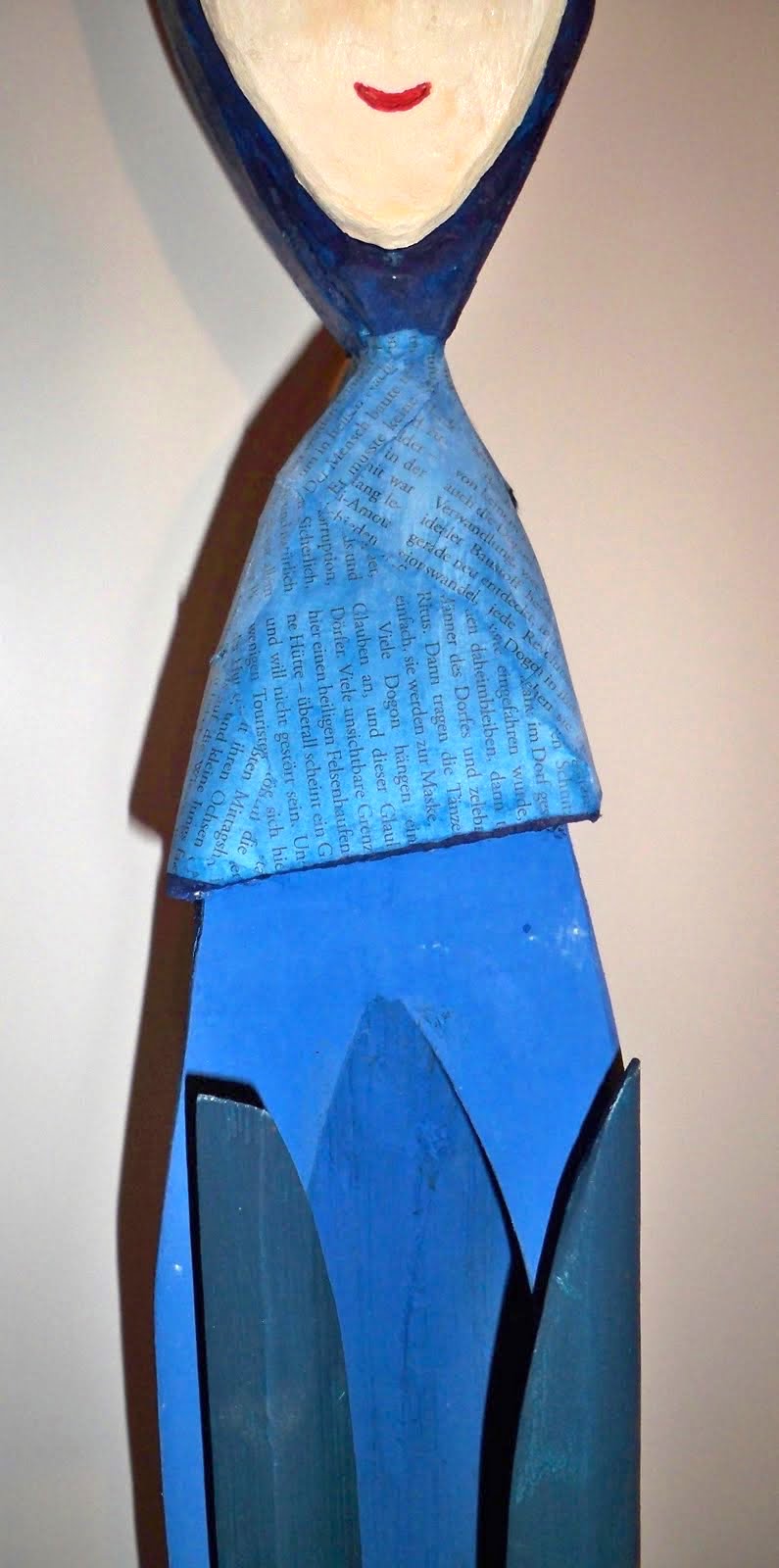 1. Ida von Herzfeld (770-825) XII2011 Kantholz 7x9x100cm, Abtönfarbe, Draht Attribut: Figur ist ausgehöhlt mit angedeuteter Kirchentür, Zeitungsartikel auf dem Kragen (DIE ZEIT): Ureinwohner Lateinamerikas